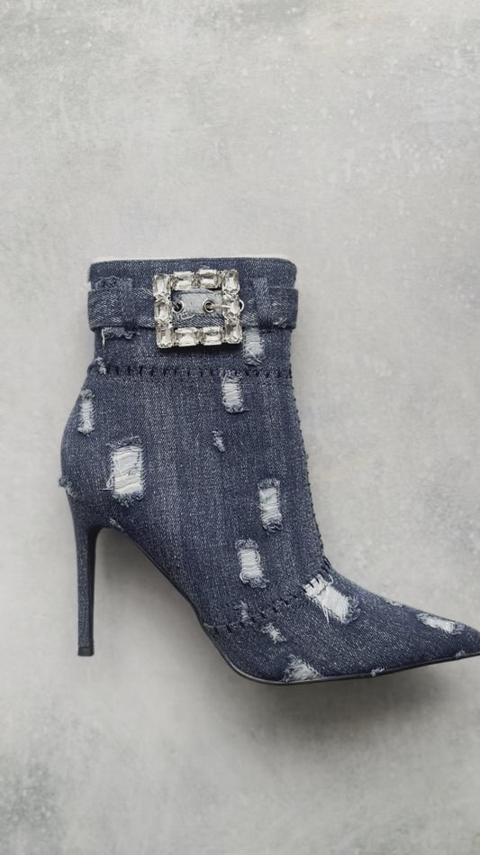 DANGER Dark Distressed Denim Bootie